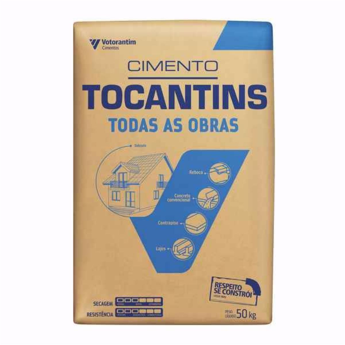 O Cimento Tocantins 50 kg é ideal para reboco, contrapiso, concreto convencional e laje.
